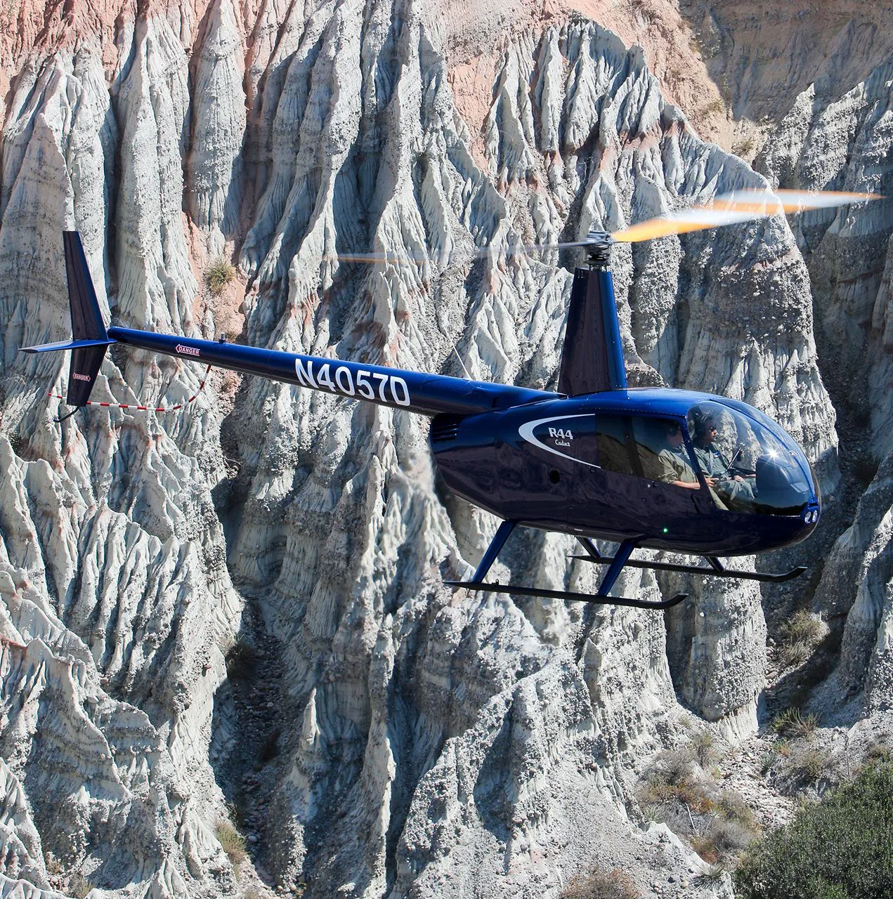 The two-seat R44 CADET is a versatile helicopter ideally suited for flight schools and operators who want the economy of a small helicopter without sacrificing the power and performance of a large helicopter. The Cadet has the same airframe, rotor system and Lycoming O-540 engine as the proven R44 Raven I. The differences are the Cadet's aft compartment is reconfigured for cargo, the maximum gross weight is reduced to 2200 lb, and the engine power is derated to 210 hp take-off and 185 hp continuous. The lower weight and derated power provide increased performance margins at high altitudes and extend the time between overhauls to 2400 hours. Cadets feature streamlined instrument panels and a crashworthy fuel system.