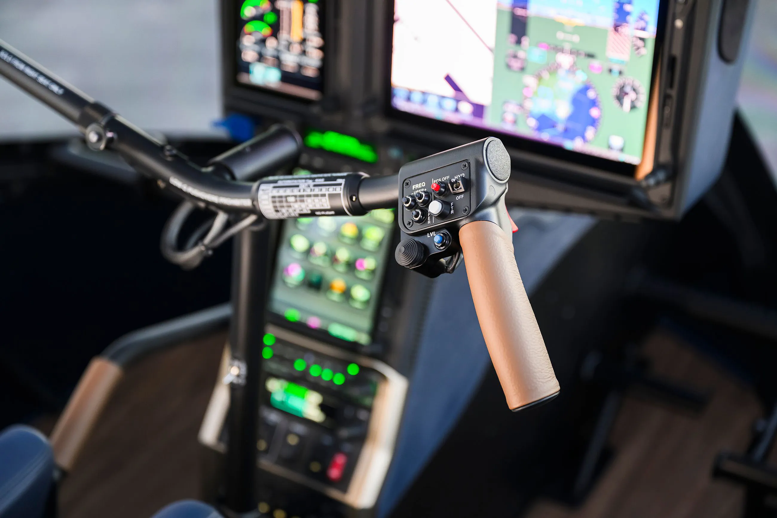 - All-glass cockpit with sun visors and glare shield.